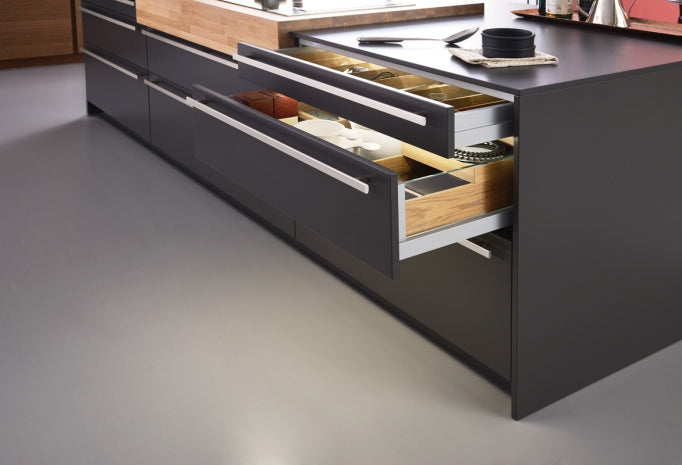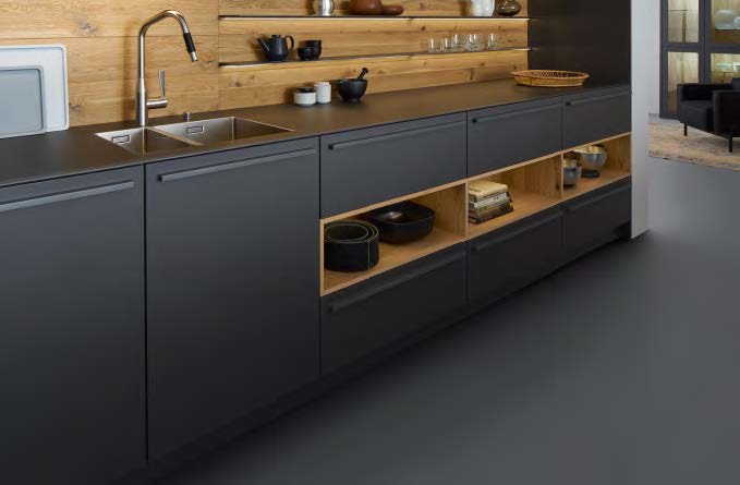 > ألواح الأدراج، ألواح الأبواب، الألواح المكشوفة، اللوح القاعدي: لوح MDF بسماكة 18 مم مع تشطيب الورنيش، ألواح خلفية بسماكة 9 مم